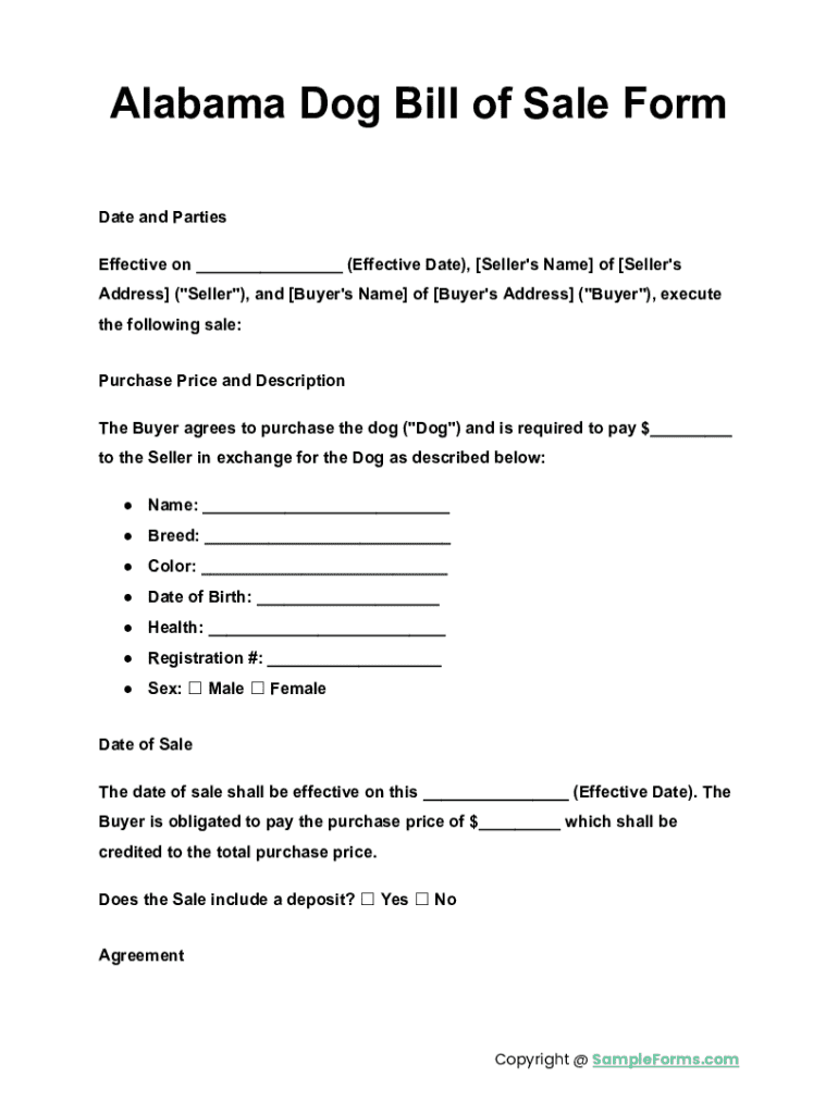 Alabama Dog Bill of Sale Form: A Comprehensive Guide
