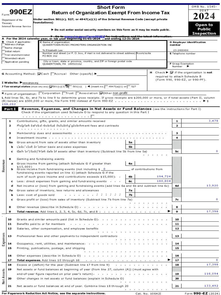 Get the free QUAKERTOWN MUSIC PROMOTERS ORGANIZATION INC