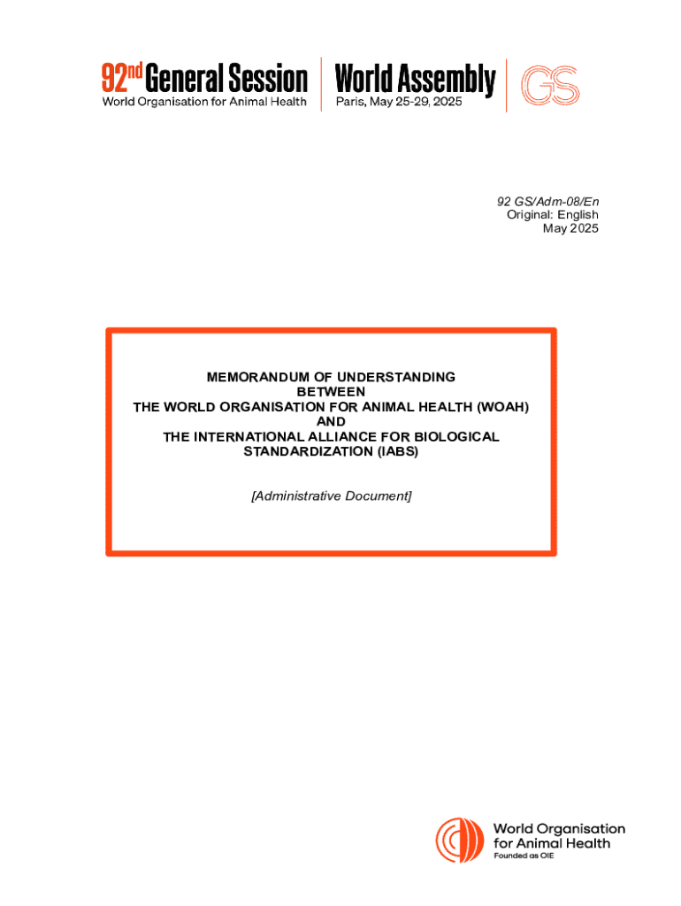 Get the free Memorandum of Intent between the World Organisation for ...