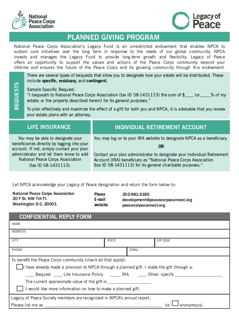 NPCA legacy of peace form: A comprehensive guide to securing your Peace Corps legacy