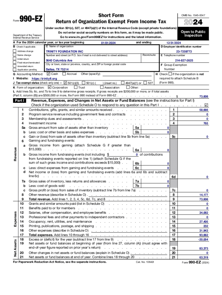 FormShort Form Return of Organization Exempt From Income Tax990EZDepartment of the Treasury Internal Revenue ServiceUnder section 501(c), 527, or 4947(a)(1) of the Internal Revenue Code (except private