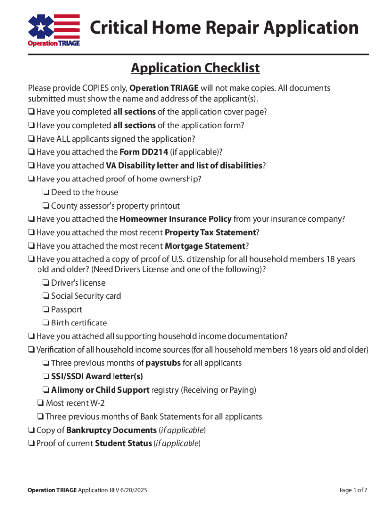 The application form generally consists of sections detailing household information, the nature of repairs needed, and supporting documents. It is crucial to explain your situation clearly, highlighting the urgency of repairs. Tips for submitting a strong application include being concise yet thorough, providing clear details about your home issues, and ensuring all documentation is submitted neatly.