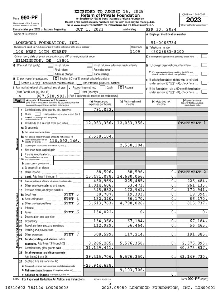 Overview of Longwood Foundation Inc form