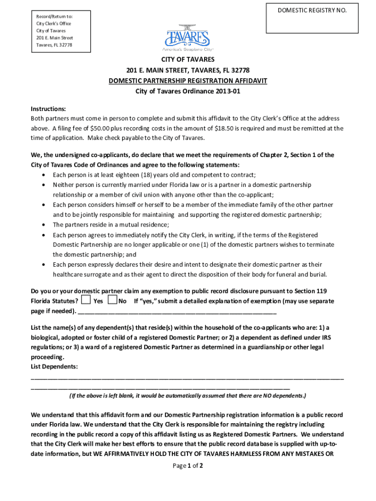 Get the free Affidavit of Amendment of Domestic Partnership - Address ...