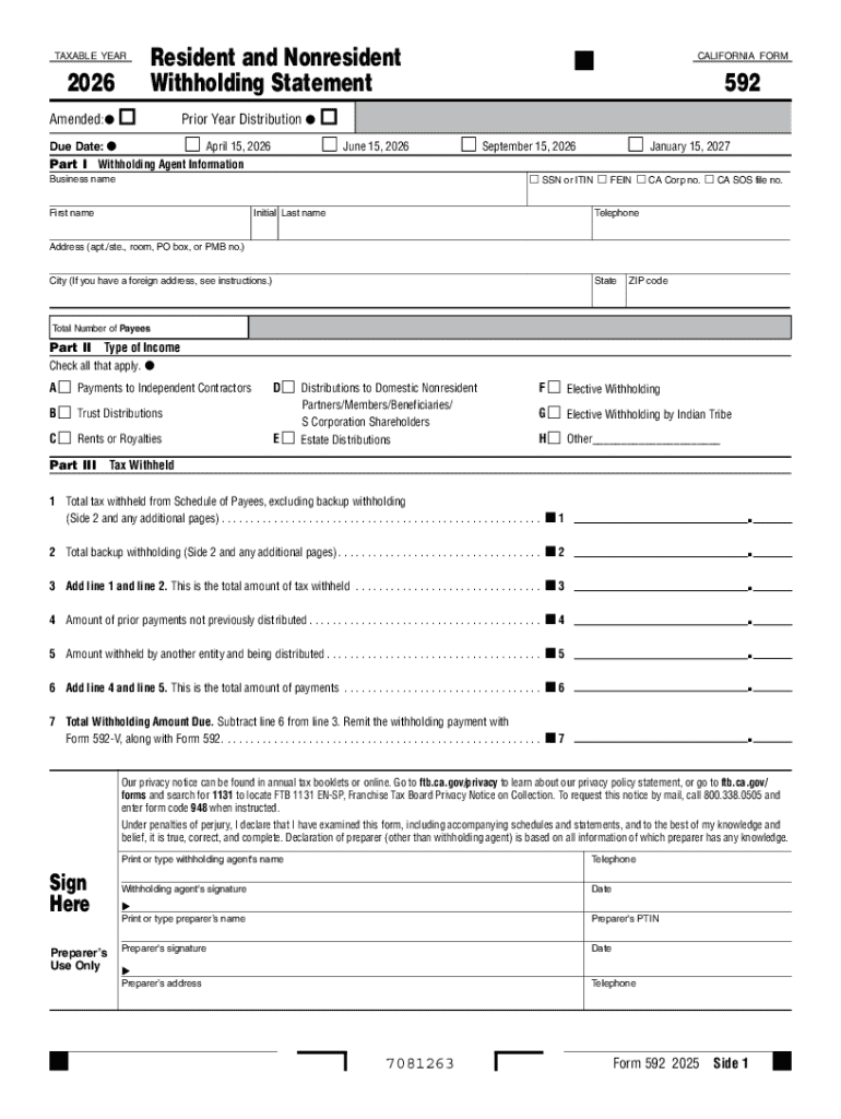 Understanding where and when to submit Form 592 is essential for compliance and to avoid penalties. Typically, Form 592 can be submitted to the California Department of Tax and Fee Administration through various channels. Ensuring that you submit the form on time aligns with California’s tax deadlines, commonly set for annual income tax filings.