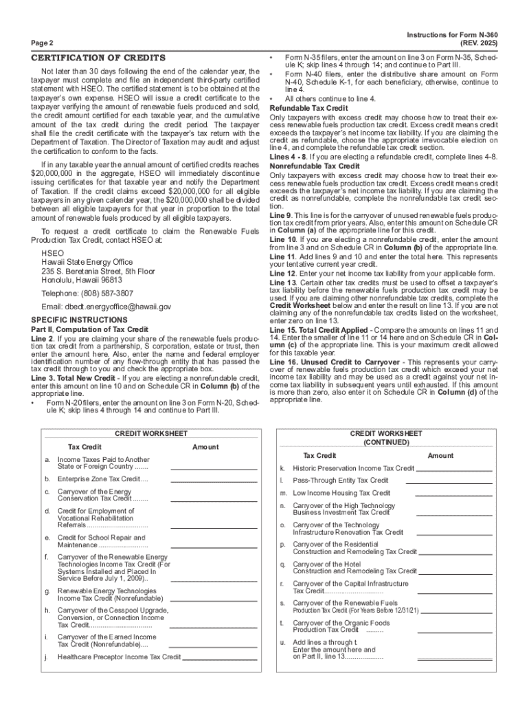 Instructions for Form N-360: Your Complete Guide to the Renewable Fuels Production Tax Credit