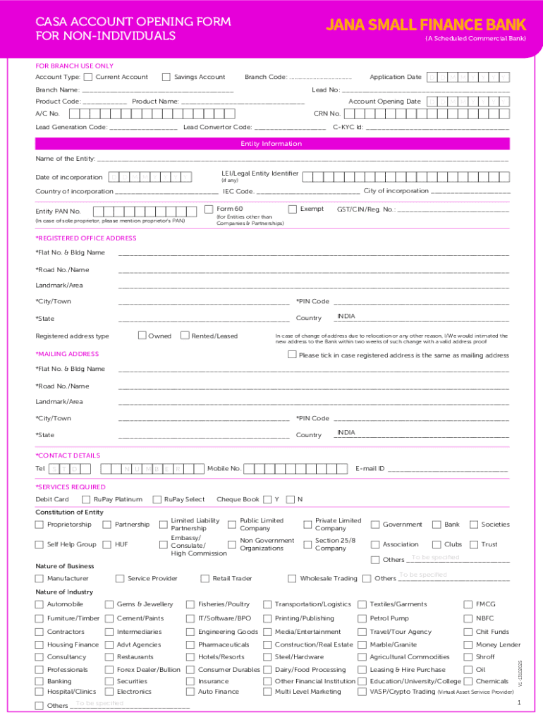 Get the free CASA Account Opening form for non-individuals