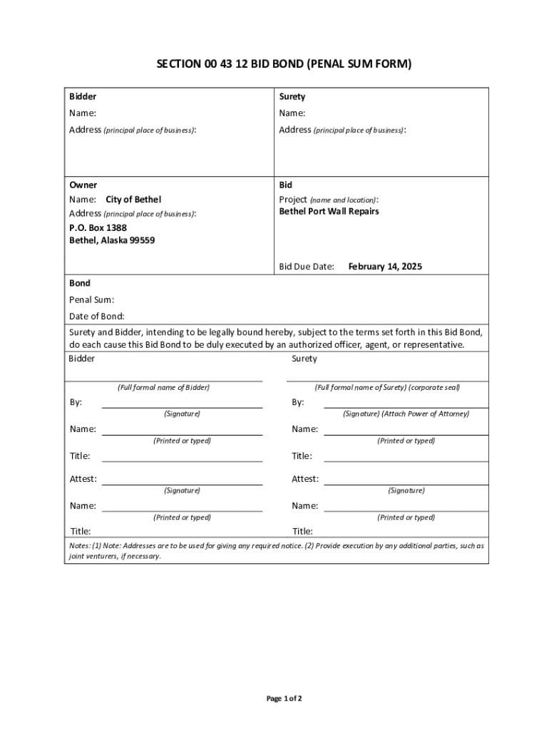 Get the free SECTION 00 43 12 BID BOND (PENAL SUM FORM)