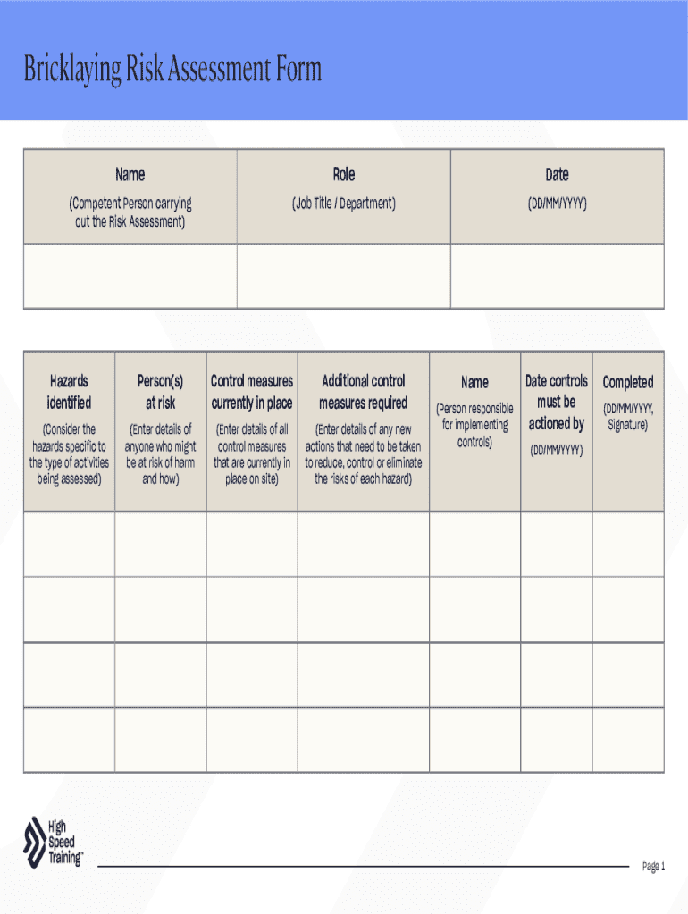 Bricklaying Risk Assessment Template Form: Ensuring Safety and Compliance in Your Projects