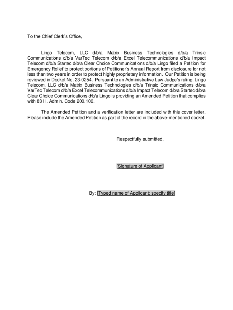 Get the free To the Chief Clerk's Office, Lingo Telecom, LLC d/b/a Matrix ...