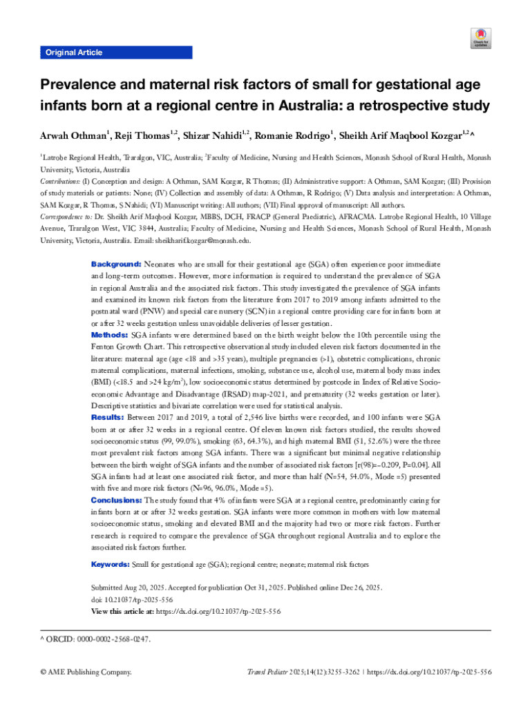 Get the free Prevalence and maternal risk factors of small for gestational age ...