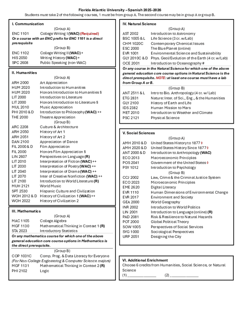 The layout of the FAU catalog form typically includes sections for personal details, academic history, program of study, and any required supporting documents. An understanding of this structure ensures that students provide all necessary information efficiently, aiding in their academic journey.