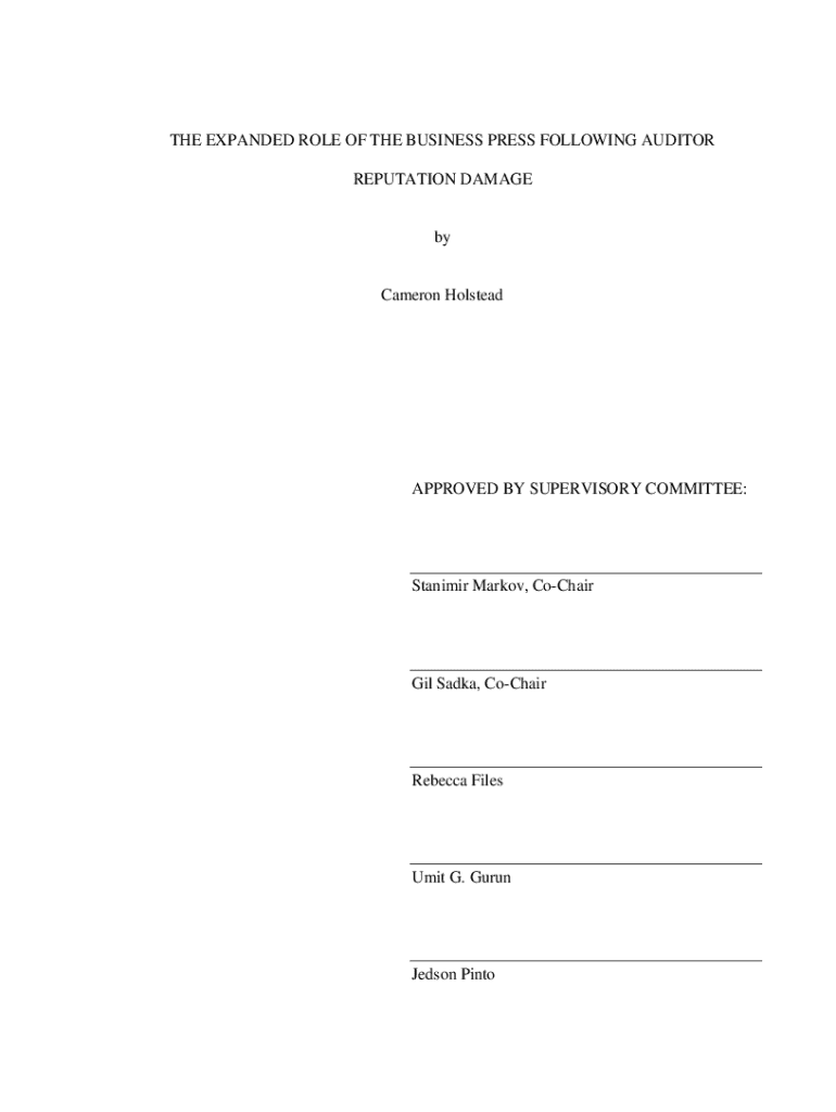 Get the free the expanded role of the business press following auditor