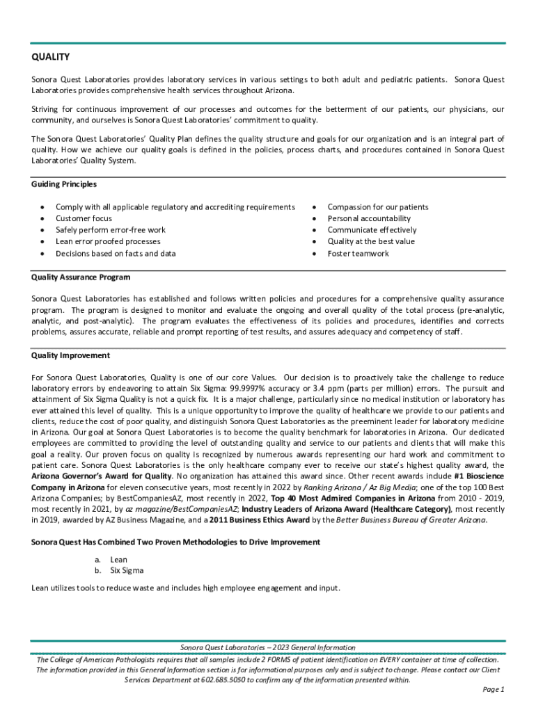 QUALITY Sonora Quest Laboratories provides laboratory services in various settings to both adult and pediatric patients. Sonora Quest Laboratories provides comprehensive health services throughout