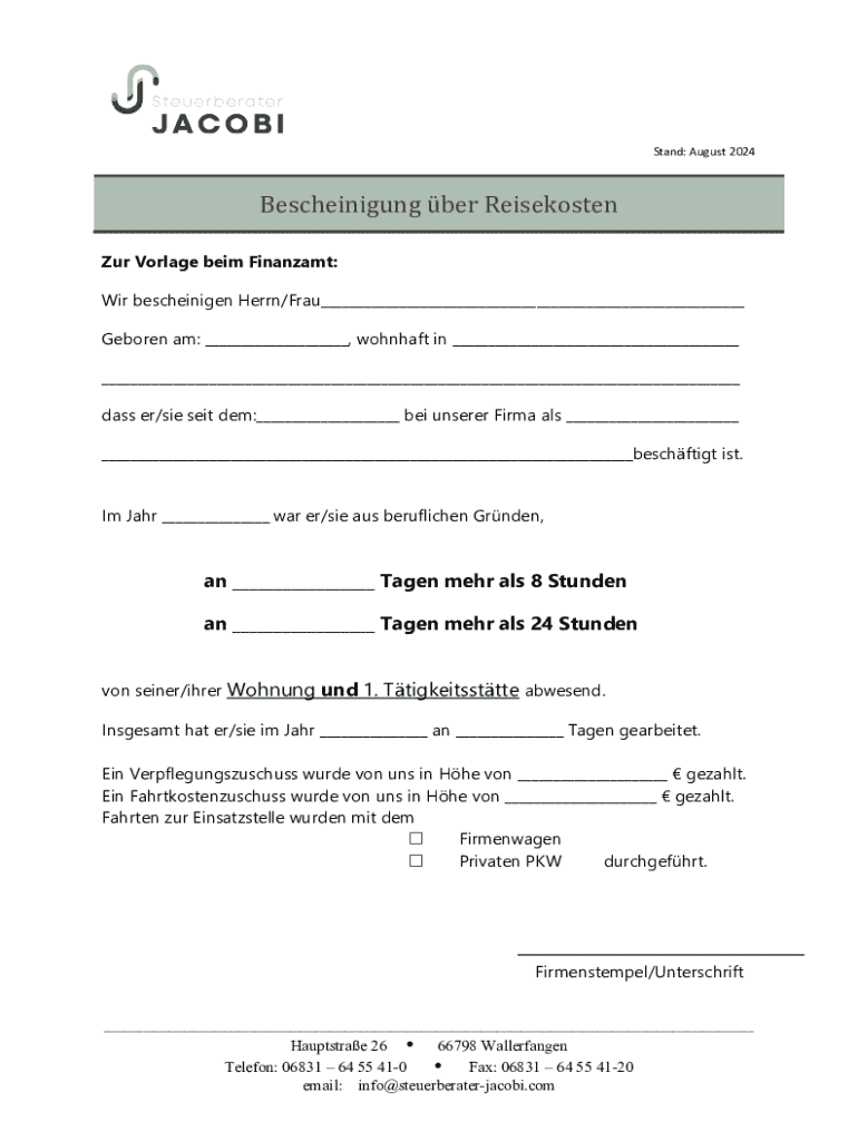 So füllen Sie bescheinigung ber reisekosten aus