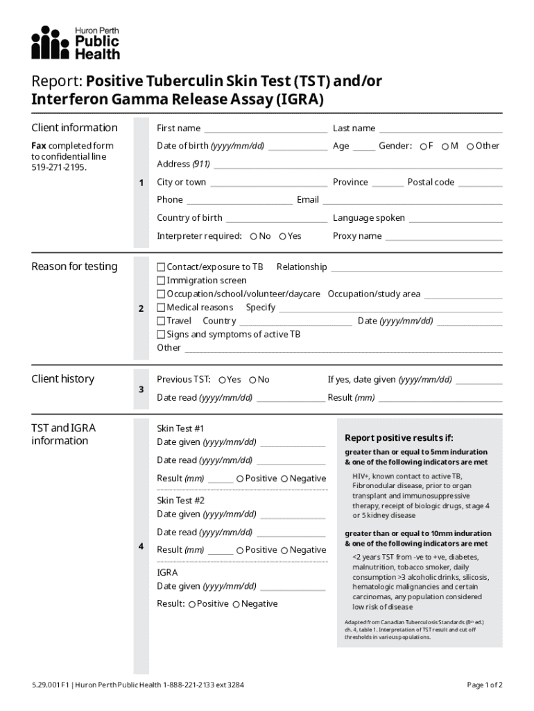 Get the free TB Skin Test (TST) / IGRA Positive Result Reporting Form
