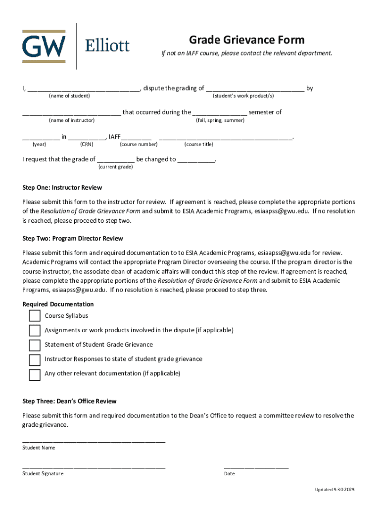 Get the free Grade Grievance and Appeal Form