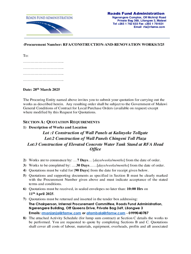 The importance of the financing form cannot be overstated. It serves as the primary medium through which essential information about road projects is conveyed, allowing the RFA to assess the feasibility of funding requests. This application not only facilitates transparency in the funding process but also ensures that all necessary evaluations are conducted to determine the viability and sustainability of proposed projects. Consequently, having a well-prepared financing form can significantly influence the likelihood of receiving funds.
