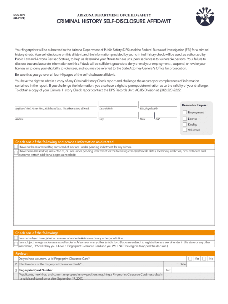 The DCS-1078 Criminal History Self-Disclosure Form: A Comprehensive Guide