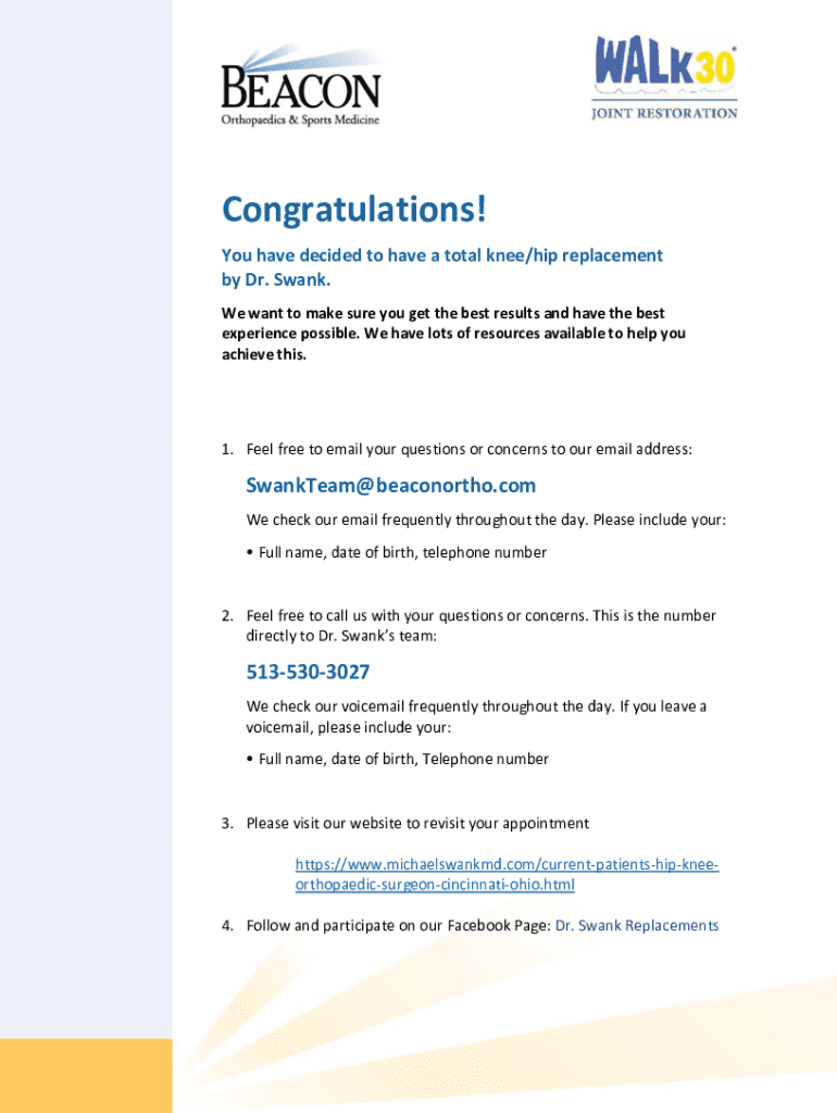 The dr swank Total Form is particularly beneficial for individuals considering or preparing for knee replacement surgery, especially those suffering from conditions like osteoarthritis. This form is also useful for healthcare teams managing this patient population, ensuring every team member is on the same page regarding treatment objectives.