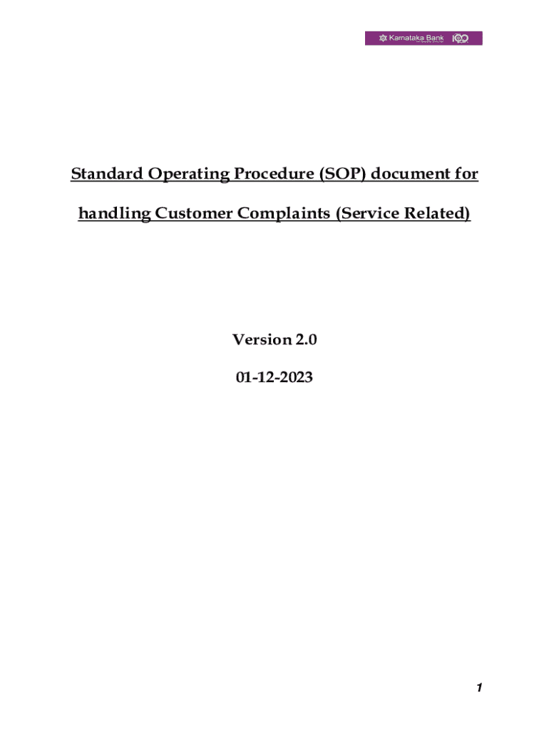 Standard Operating Procedure (SOP) document for handling Customer Complaints (Service Related)Version 2.0 011220231CONTENTS: Sl NoContentsPage NoIIntroduction3IIObjective3IIIDefinition of Query, Request