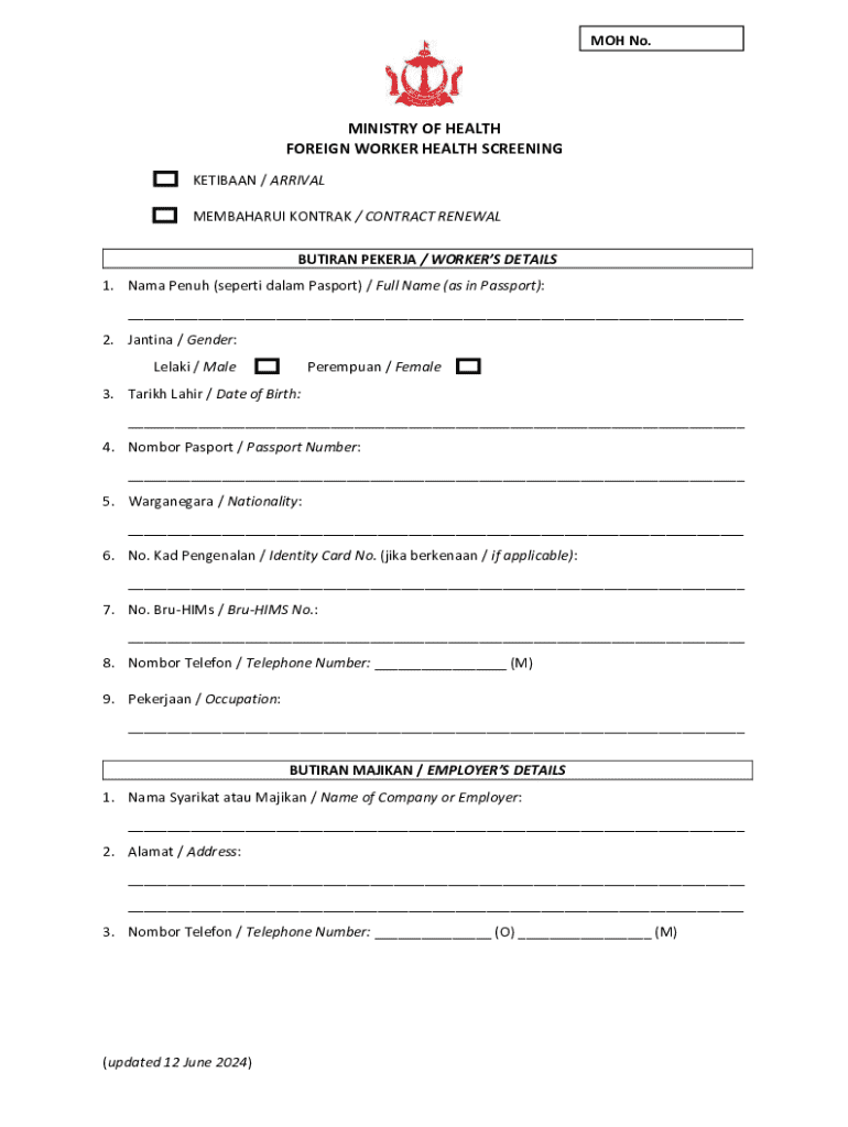 Get the free MINISTRY OF HEALTH FOREIGN WORKER ... - moh gov