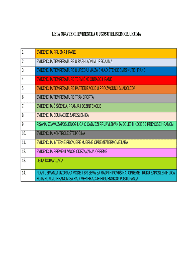 Obavezne evidencije o hrani u ugostiteljskim objektima template instructions