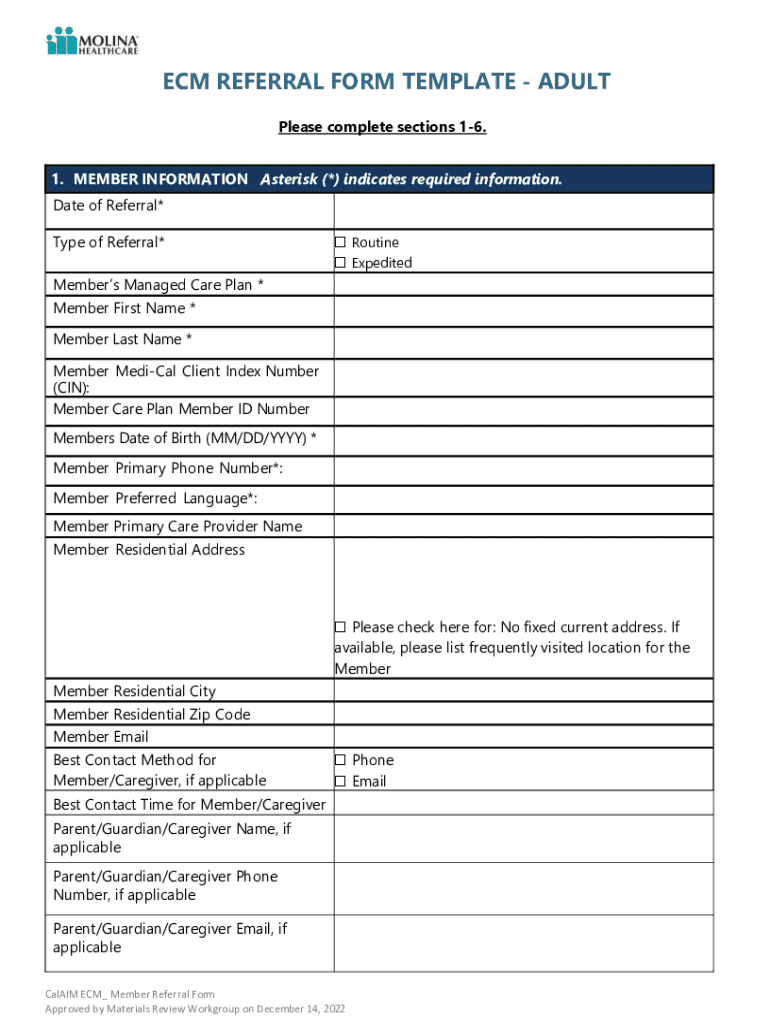 Get the free Enhanced Care Management (ECM) Benefit Referral Form