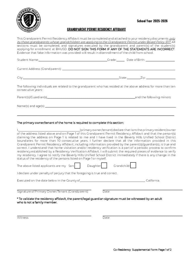 Filling out this form is vital for many families, as it provides a legal framework for grandparents to reside with their grandchildren, often necessary for caregiving, especially in single-parent households or families in transition. The form grants access to benefits, such as healthcare and education, helping to improve the quality of life for both grandparents and grandchildren.