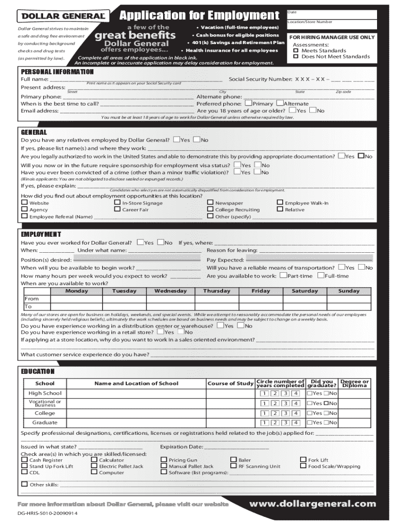 When filling out the dollar general careers form, specific key information is required. This includes your personal details, employment history, and education credentials, which provide a comprehensive view of your qualifications.