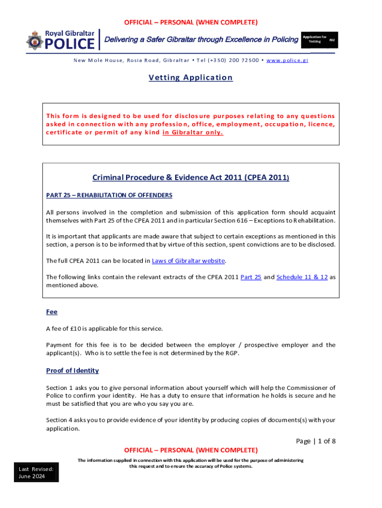 Comprehensive Guide to the Vetting Application Criminal Procedure Form
