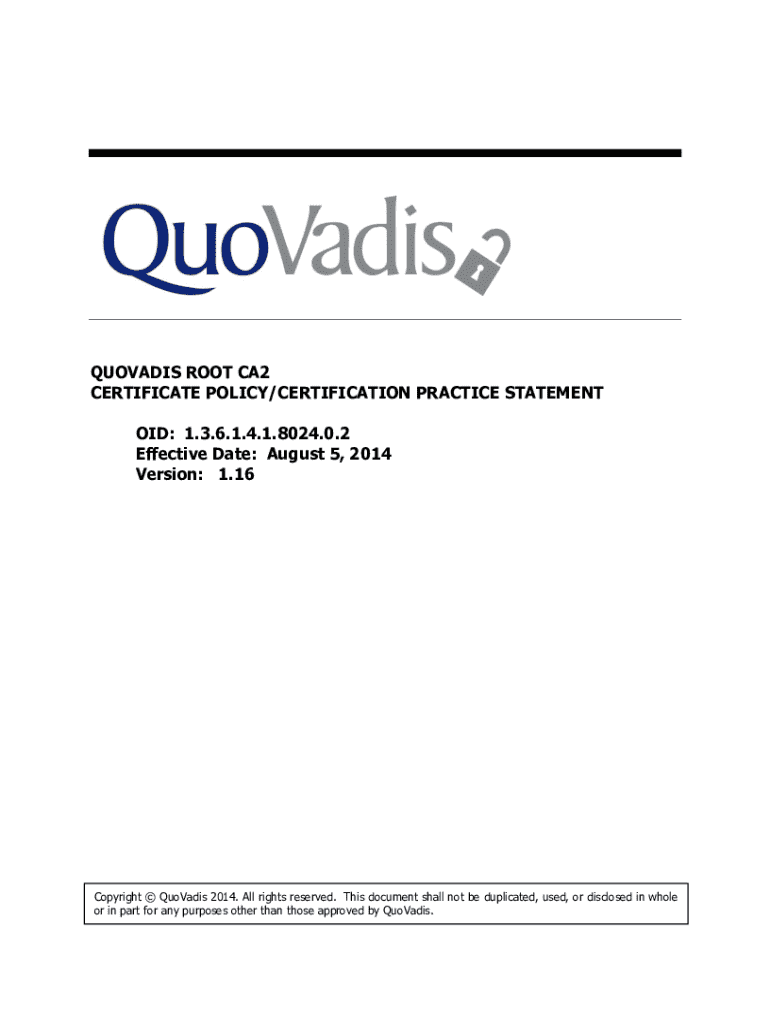 Get the free QuoVadis Root CA2 CP/CPS