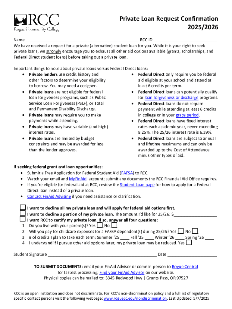 Submitting the 2025-26 private loan request form can be done in various ways, depending on the lender's offerings. Familiarizing yourself with the submission methods will ensure that you choose the one that best suits your needs.