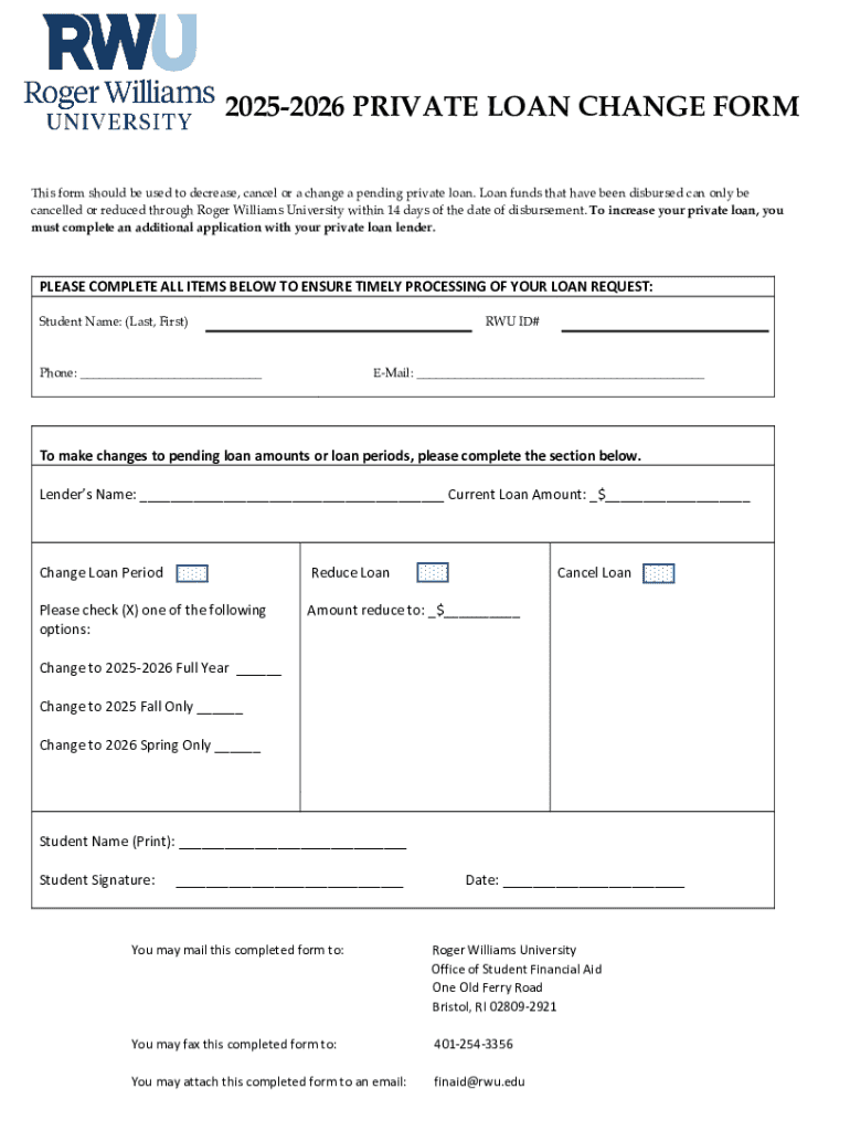The 2 private loan change form is a critical document for managing your private student loans effectively. It serves as a formal request to modify existing loan information, whether you're adjusting your loan amount, repayment terms, or borrower details. Keeping your loan information up-to-date is crucial not only for compliance but also for ensuring that you are making the most of your financial resources as an educational borrower.