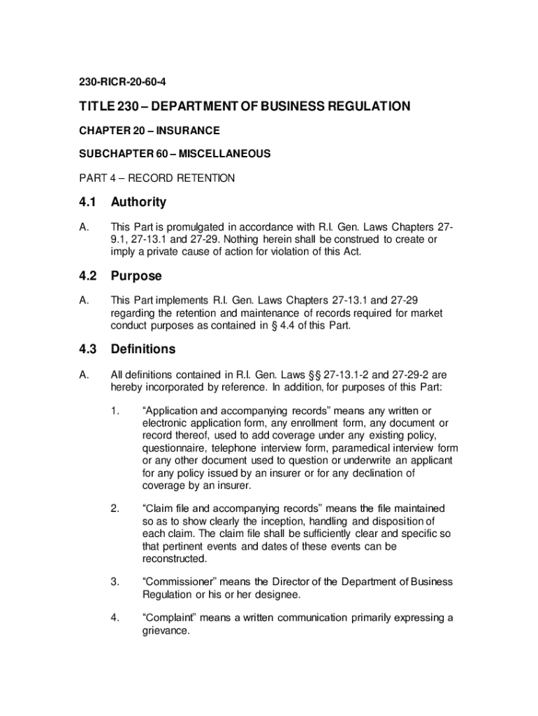 Get the free PART 4 RECORD RETENTION