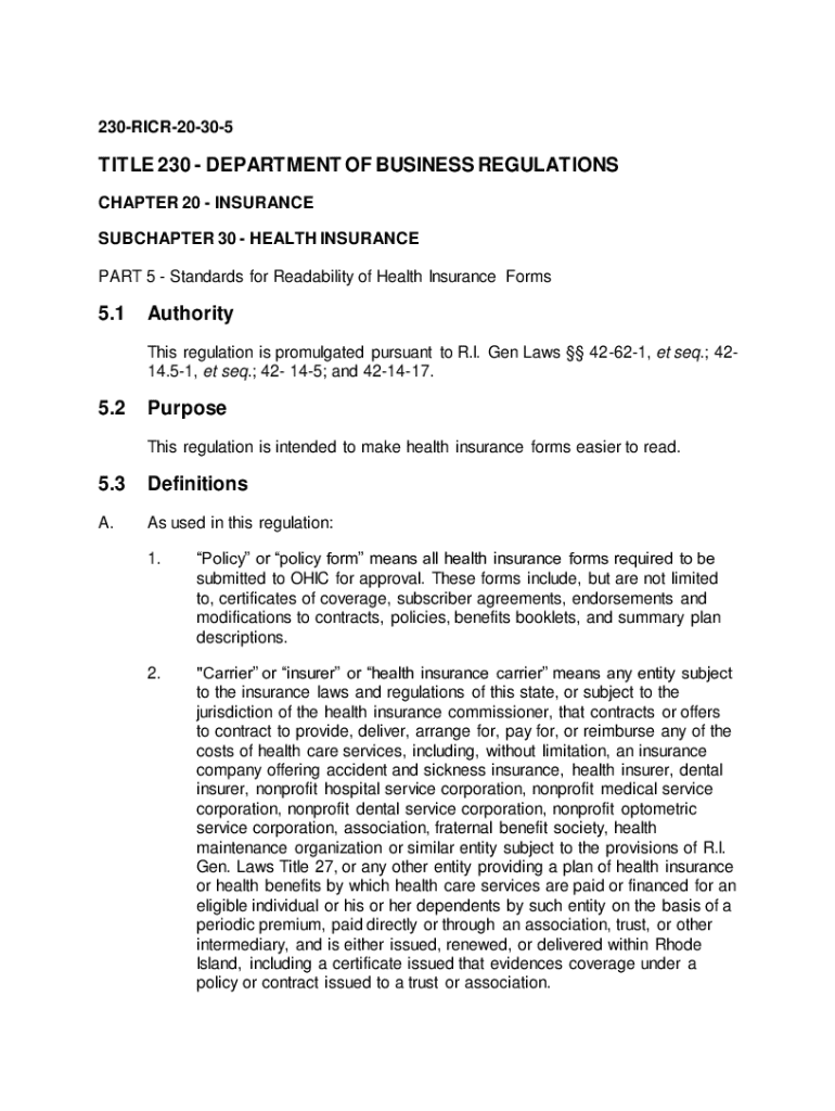 Get the free Part 5 - Standards for Readability of Health Insurance Forms ...