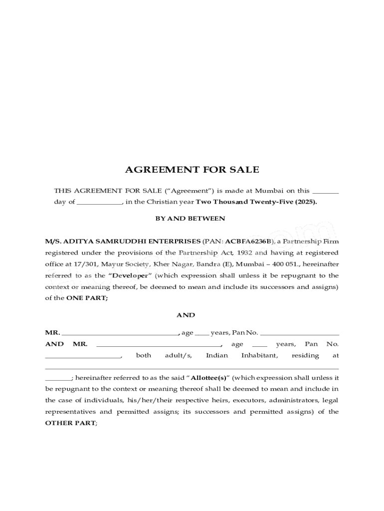 Get the free THIS AGREEMENT FOR SALE (Agreement) is made at Mumbai on this