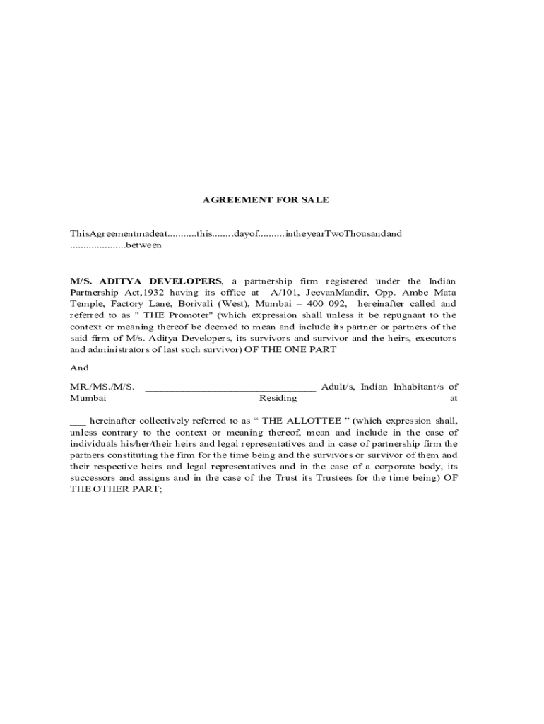 Get the free dahisar snehal Agreement for Sale rera