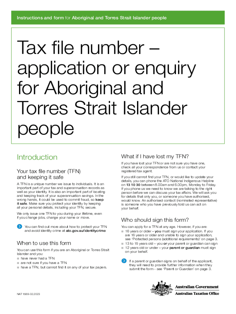 Instructions and form for Aboriginal and Torres Strait Islander peopleTax file numberapplication or enquiry for Aboriginal and Torres Strait Islander people Introduction Your tax file number (TFN)