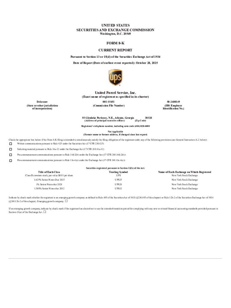 Get the free 8-K - 10/28/2025 - United Parcel Service, Inc. - UPS Investor Relations