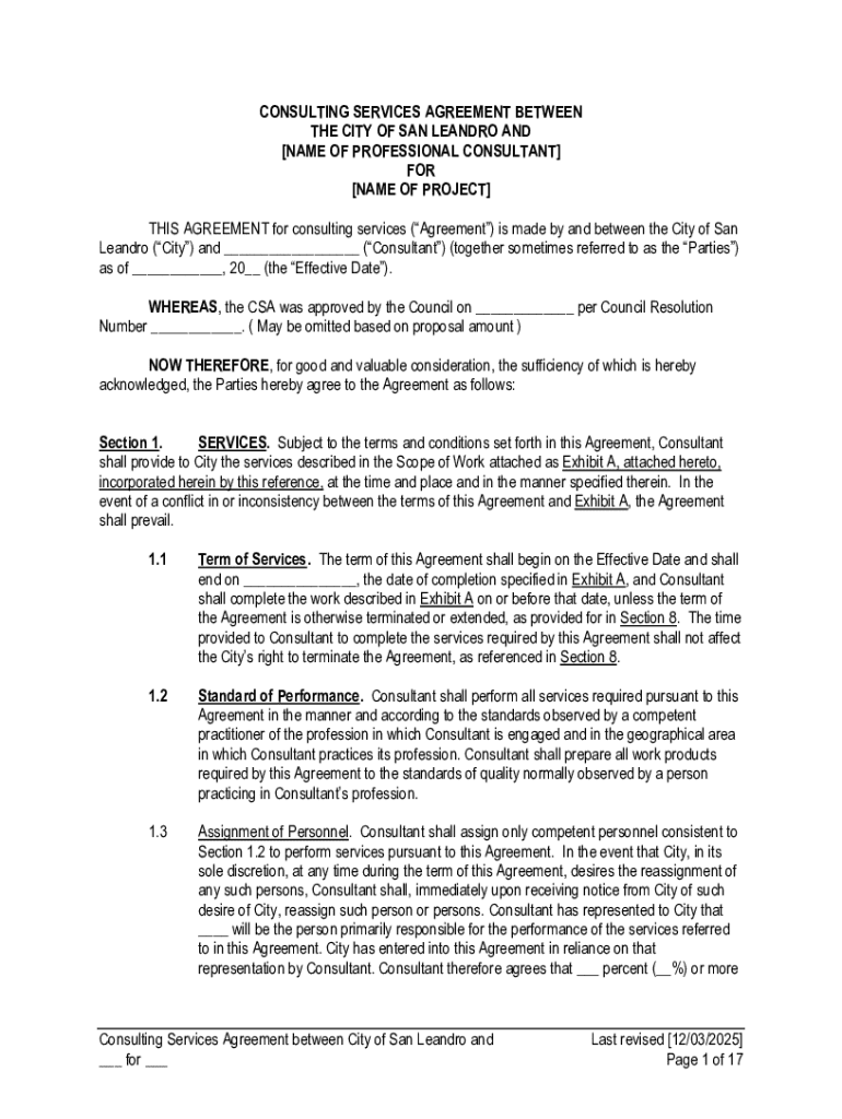 Get the free Consulting Services Agreement between City of San ...