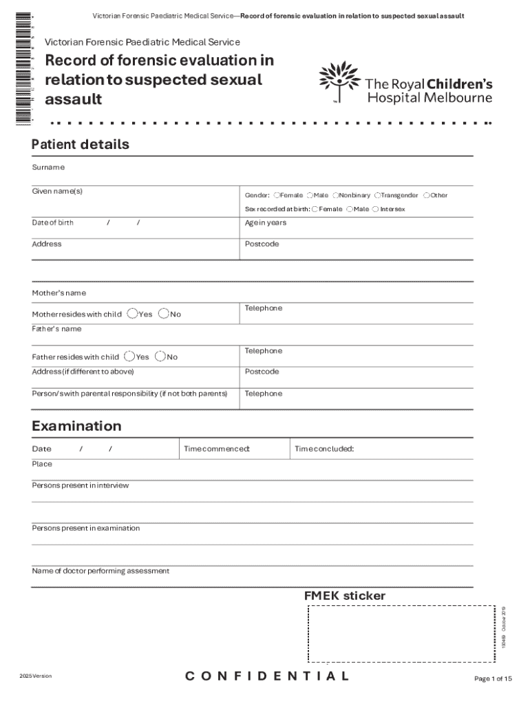 Get the free Record of forensic evaluation in relation to suspected sexual assault