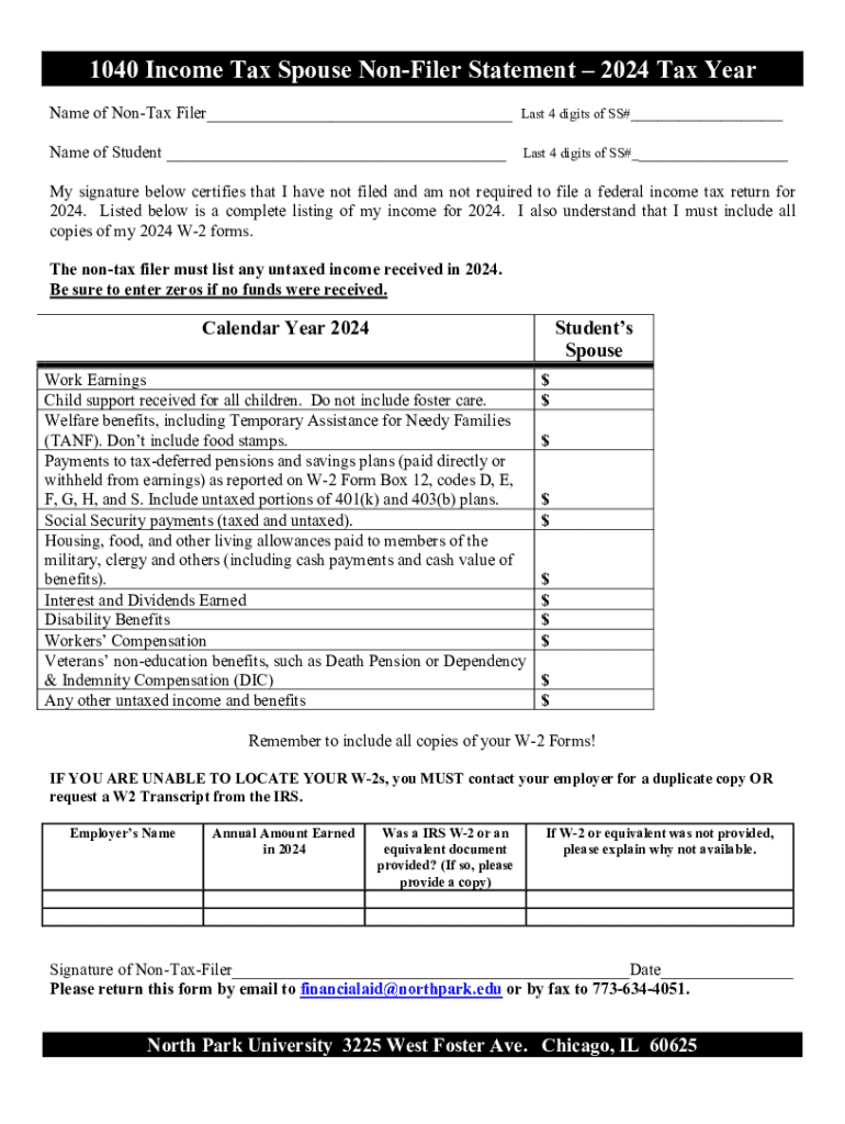 The studentspouse non-filer statement form consists of several sections that need to be carefully filled out to ensure accuracy and compliance with federal requirements. Let’s break down these key components.