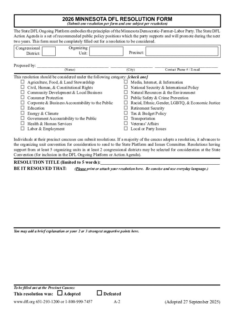 2026 Minnesota DFL resolution form: A comprehensive guide