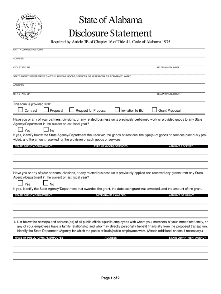 State of Alabama Disclosure Statement DOCX Form: A Comprehensive Guide