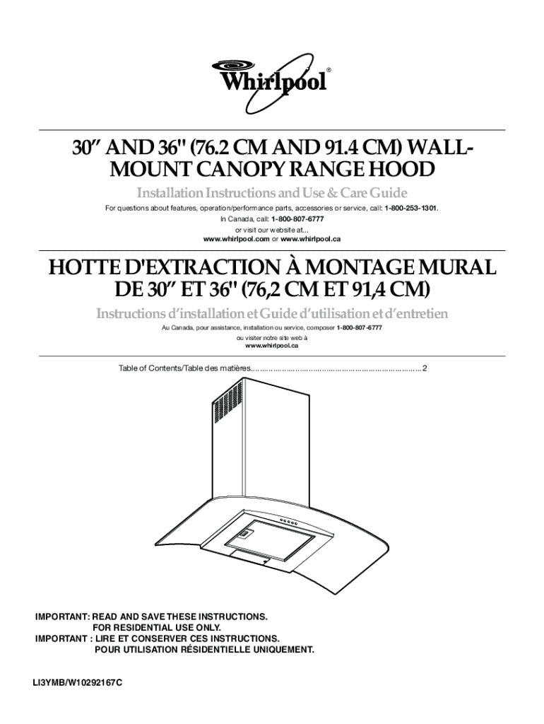 Obtenir le gratuit 30" (76.2 cm) and 36" (91.4 cm) wall-mount canopy range ...
