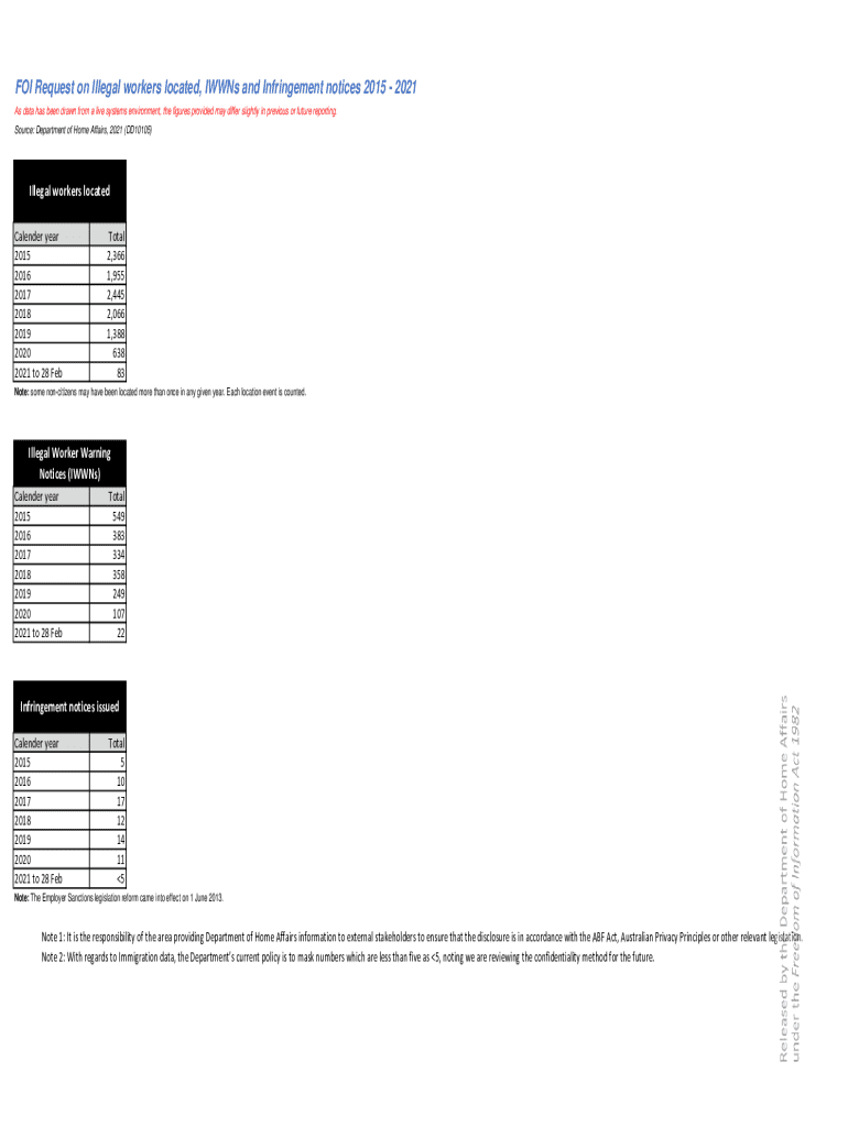 Get the free FOI Request on Illegal workers located, IWWNs and ...