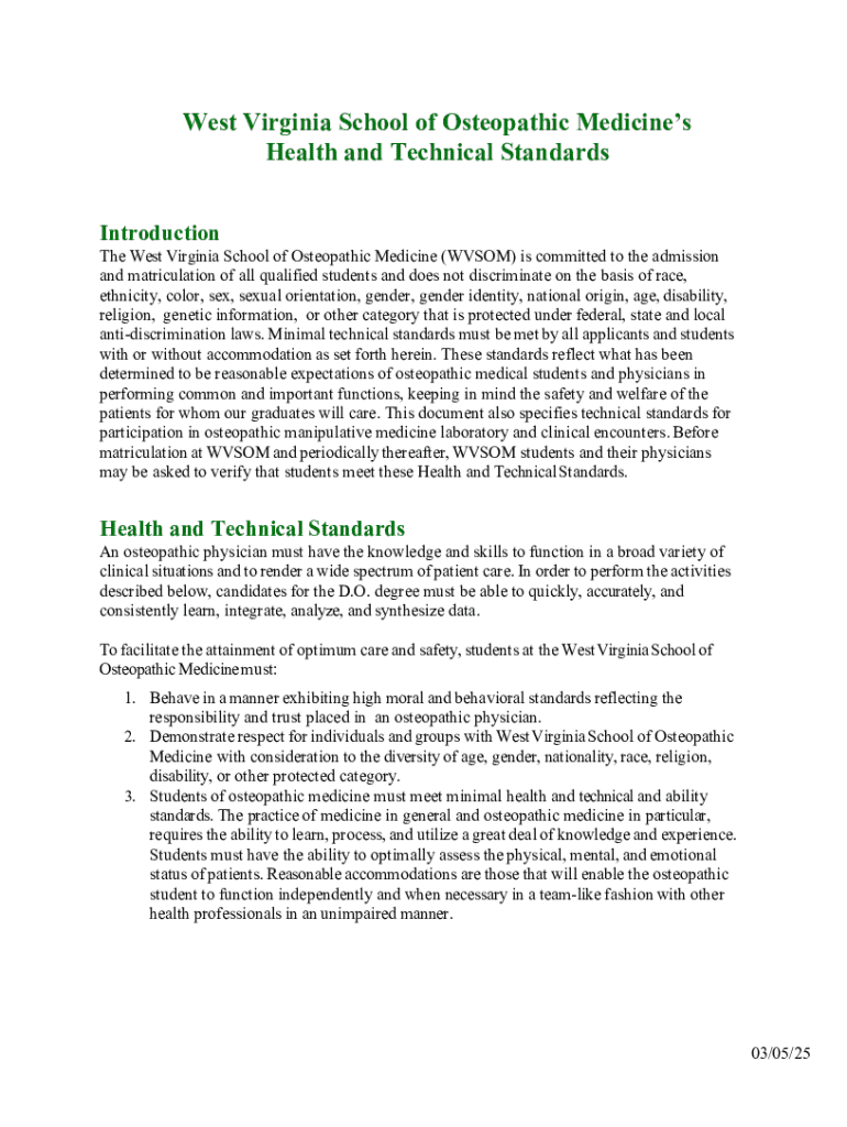 Get the free Health and Technical Standards Form