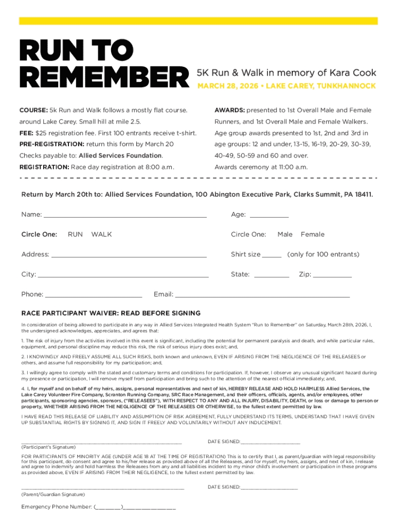 Completing the Admiral Stark Memorial 5k form is a straightforward process, but clarity in each section is essential to ensure proper registration. Here's a step-by-step guide to help you navigate through the form seamlessly.