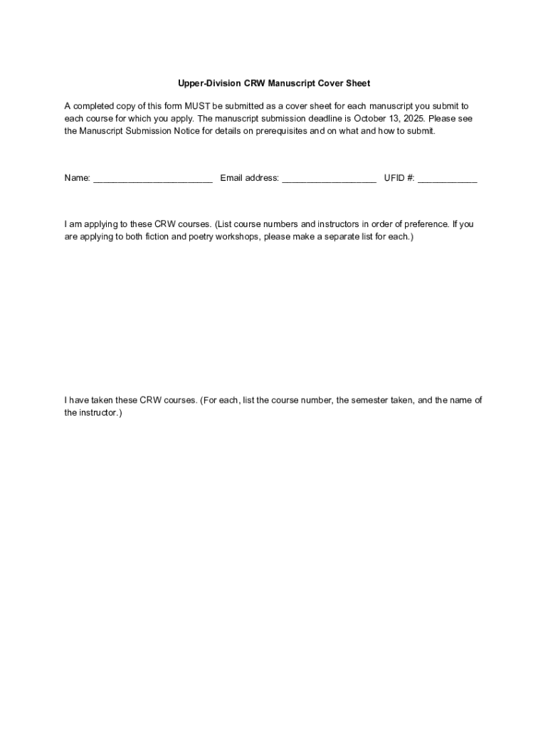 Get the free Advance Registration for Upper-Division Creative-Writing ...